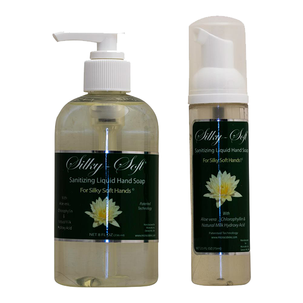 Contains skin healing Aloe vera extract, skin rejuvenating alpha hydroxy acid with Natural Cleaning Contribution of Chlorophyllin. Silky Soft Contains ingredients lethal for Mycobacterium tuberculosis and Protozoan cysts (Giardia). It does not contain the following chemicals that most sanitizers have. Silky-Soft® is free of toxic chemicals such as: • Chloroxylenol, • Para-chloro-meta-xylenol (PCMX), • Triclosan. • Nonyl-phenoxy-poly-ethanol, • Ethyl alcohol, • Iodine, • Quaternary ammonium Compounds (QACs)